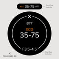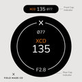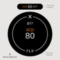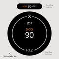 Each label, sold separately, includes a front and rear cap indicator for Hasselblad XCD lenses, displaying focal length, aperture, filter size, and lens designations. Crafted in Montreal, Canada, from durable, UV and scratch-resistant matte vinyl from North America with outdoor rated adhesive, these indicators offer lasting performance and a sleek, professional appearance.
