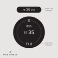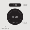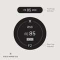 Each label, sold separately, includes a front and rear cap indicator for Viltrox - Sony E lenses, displaying focal length, aperture, filter size, and lens designations. Crafted in Montreal, Canada, from durable, UV and scratch-resistant matte vinyl from North America with outdoor rated adhesive, these indicators offer lasting performance and a sleek, professional appearance.