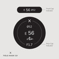 - Each label is sold separately and includes a rear lens cap indicator and a front cap indicator.