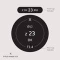 • Front indicators feature the focal length and filter size.